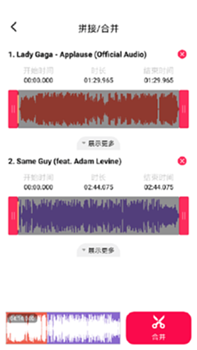 音频拼接/合成:多音频合并,对音频文件拼接剪辑。