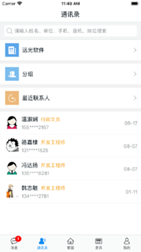 支持手机联系人和企业通讯录的全量查询,企业组织架构一目了然