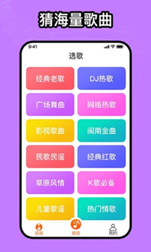 场景界面:界面简洁,老少皆宜,赶快来下载挑战吧,下个猜歌王就是你;