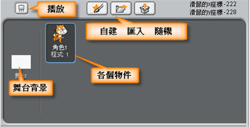 1、首先我们需要运行打开scratch,然后需要准备一个角色(软件已经帮我们备好一个默认角色了,使用这个就可以了,如果你有其他需要也可以进行替换)