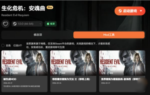 4、生化危机9:安魂曲修改器可一键安装与卸载 MOD,省去繁琐手动操作。